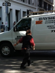The Famous time teller can be found directing traffic and alerting students how much time they have been classes. Nearly every week day at NYU. The mystery seems to be who is this petit man?, why does he feel the need to alert student?, how did he learn the nyu schedule?, and why does he have the time to do this so often?, why so much passion behind it? He’s become a key aspect for the Violets sidewalk jam between classes