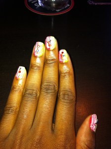 Nail Swag! Posted on November 21, 2011April 6, 2012 by Slice of Sasha Pie I love Nail Design!! One of the latest trends is the stiletto nail! I don’t know how pratical these are but a bevy of celebs have been rocking them! Here are some of my latest nail designs! I love using design pens! Share this: Click to share on X (Opens in new window) X Click to share on Facebook (Opens in new window) Facebook Like Loading...