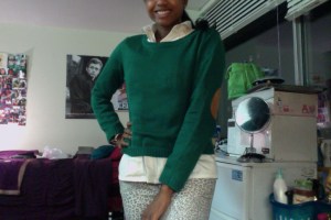 I’m wearing a green sweater with elbow pads from Forever 21 and the jeans are from Asos!