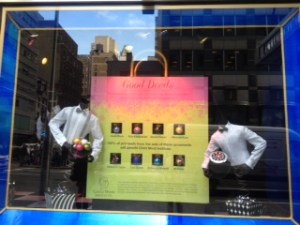 This is from Bloomingdales. There holiday ornaments for celeb products like Kim Kardashian’s perfume and the proceeds go to charity.