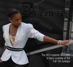 Shoulder Pads are a continuing reappearance in fashion! As seen here on the runway and in ads!Loving this striped shirt enhanced with shoulder pads.