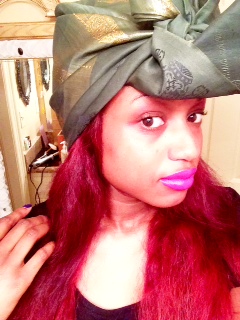 This brings me to Lavender lipstick! I love the trend! So fun and a vibrant pop from the electric shade! Here it is on Angela Simmon’s who I love and on myself along with a turban and red hair, my next stop on the color wheel!