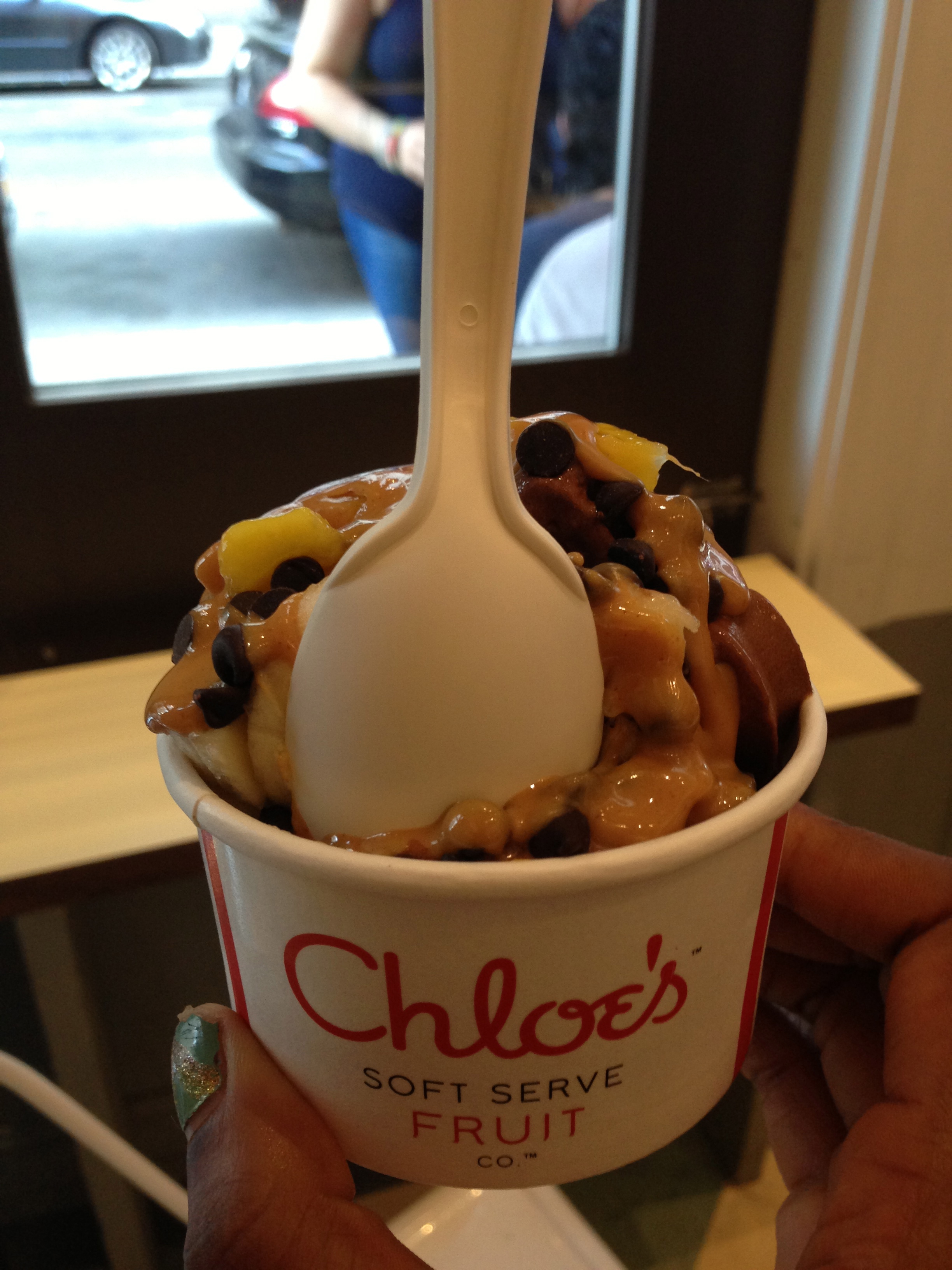 I decided to try Chloe’s Fruit because I had been hearing so much about it! Its located right by Union Square on 17th. Its dairy and gluten free and even I will say it was a tad too healthy I think I’ll go back try the banana. I had dark chocolate with dark chocolate chips, banana, and peanut butter.