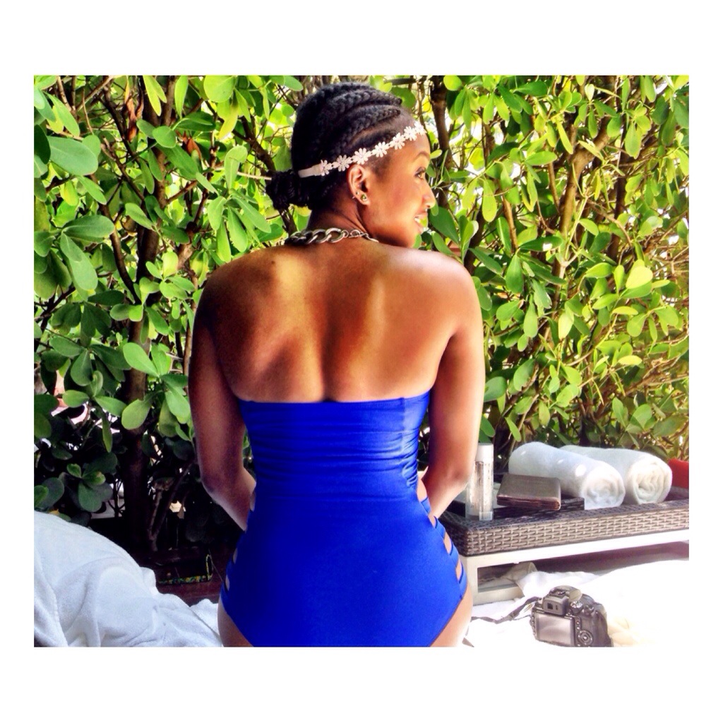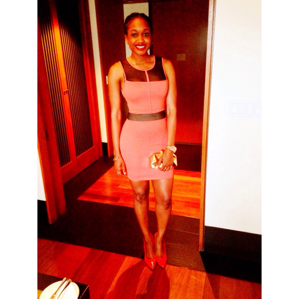 My blue cutout one piece is from ASOS. The beaded coverup is from Primark. The peach see through middle dress is from Miss Selfridges. Neon shoes are Ninewest. The black crop is from ASOS and the black leather star cutout pencil skirt is from Modelistas boutique. Seen here on Dawn from Danity Kane as well.