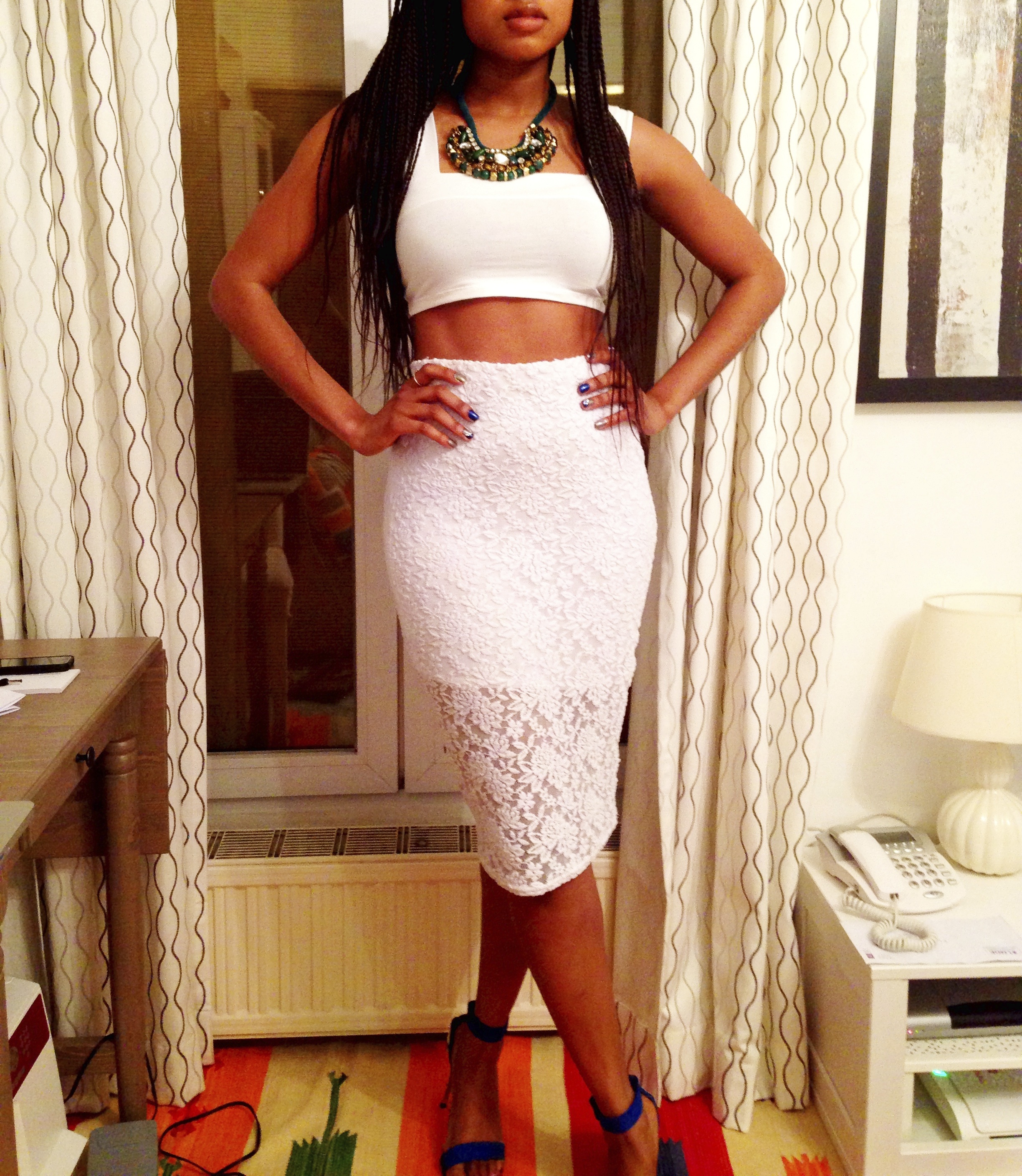 Here is a fun outfit post from a night on the town in Paris. White on white makes such a statement. I’m also proud to say this pic I posted to the gram was my first to get over 100 likes lol. The top is from ASOS, skirt from Topshop, necklace Zara, and heels are from Primark (which needs to expand in US, England has the best stores)!