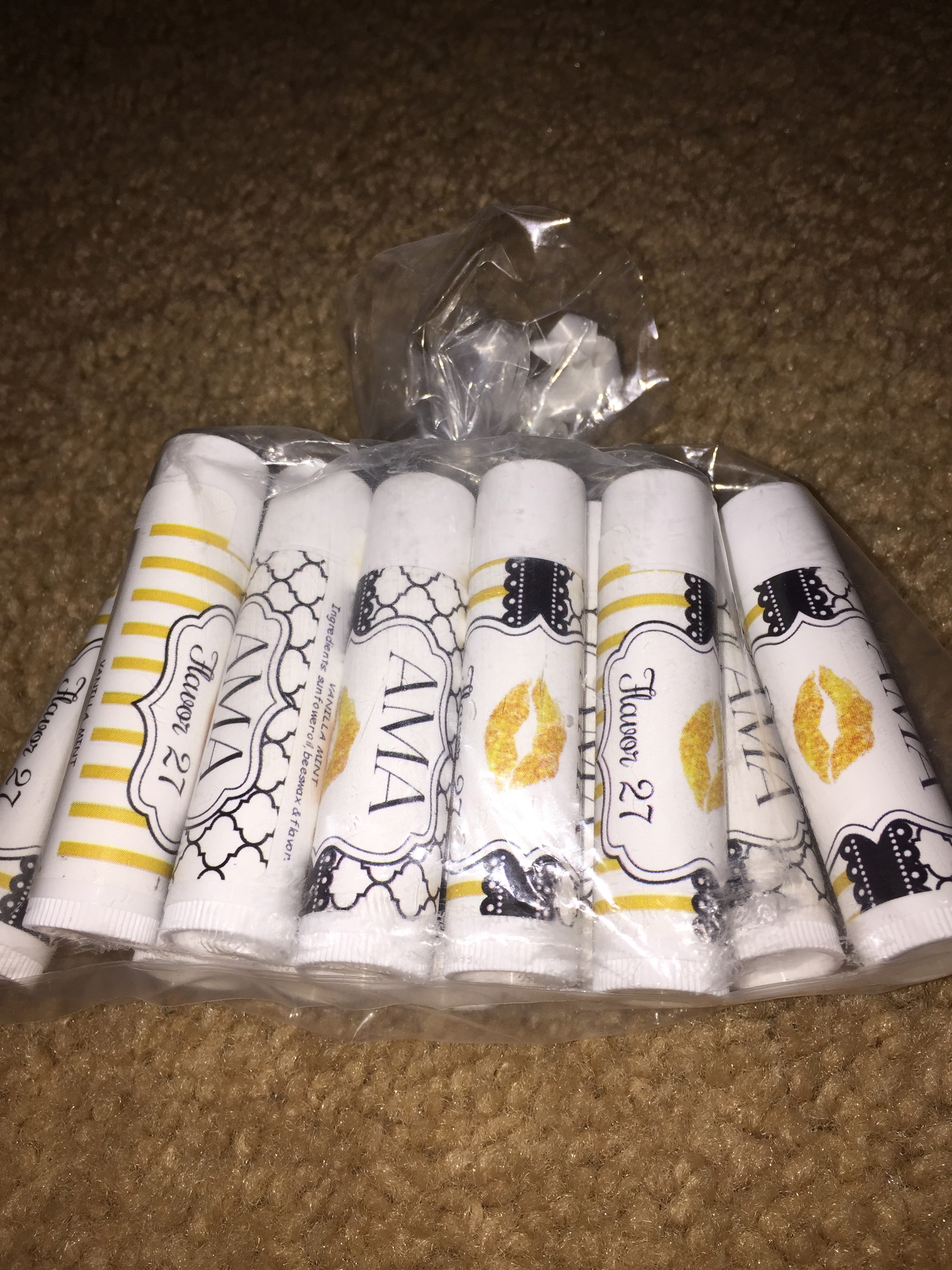 I wanted to make a party favor my sister’s Birthday celebration. I found these cute personalized chapsticks on Etsy and the labels for the lipsticks as well. The shop is LakesideLipBalms, she has a variety of options from the design of the lipsticks that you can customize, as well as the flavors of the chap-sticks. I went with vanilla mint and the best part a set of 12 is about $14. She also has a quick turn around time. It’s such a cute idea, but also wallet conscious.