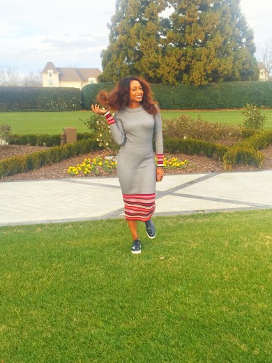Here is a flashback to a look I wore in January, while at Chateau Elan for my sister’s birthday. The oxford platform is a current trend. The style was popularized by the chic Stella McCartney Elyse shoe seen on celebs like Beyonce. While those sleek babies are not be attainable to most of us, these Zara ones in navy are a great take on the style. This grey sweater dress with bold red stripes made for a fun look. I got it from Kosmios. It is now out of stock, but H&M has a near identical one.