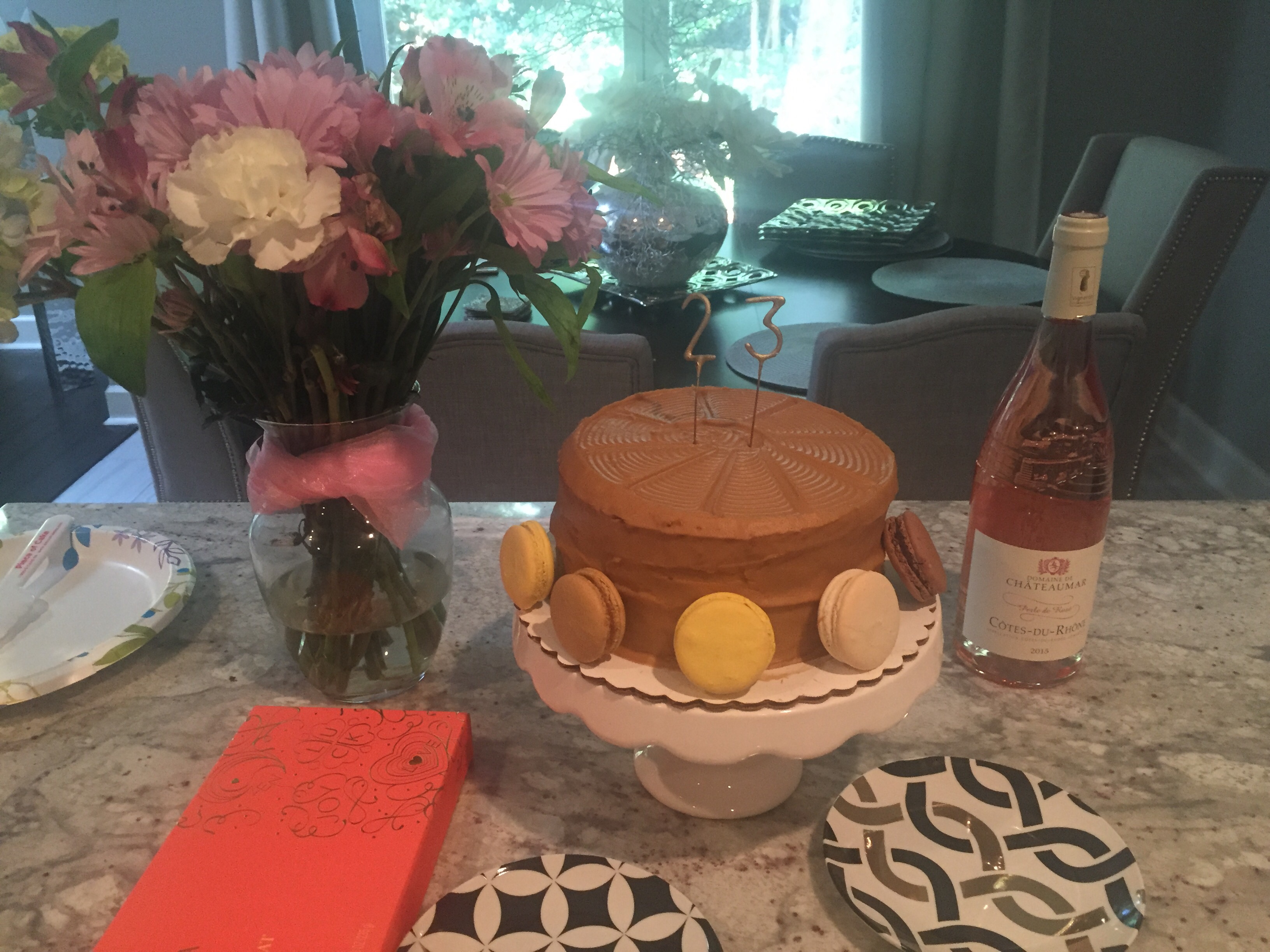 Rose, macaroons, caramel cake, chocolates, & blooms- just a few of my favorite things.
