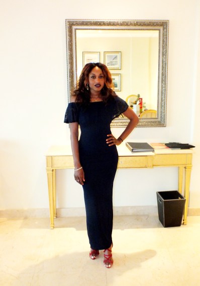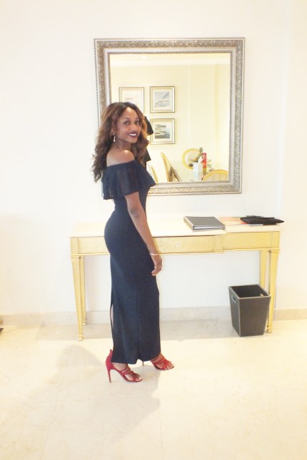 I went for dinner and wore this ASOS dress that is on sale for $25.It’s also available in white. It’s made of a stretchy bodycon and has a lovely large off-the- shoulder ruffle. Don’t sleep on the outlet items!
