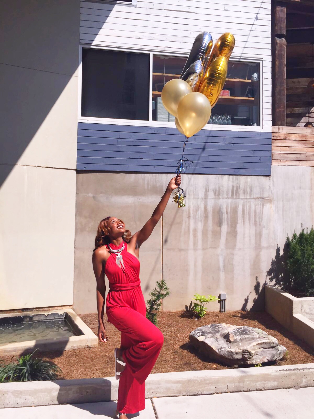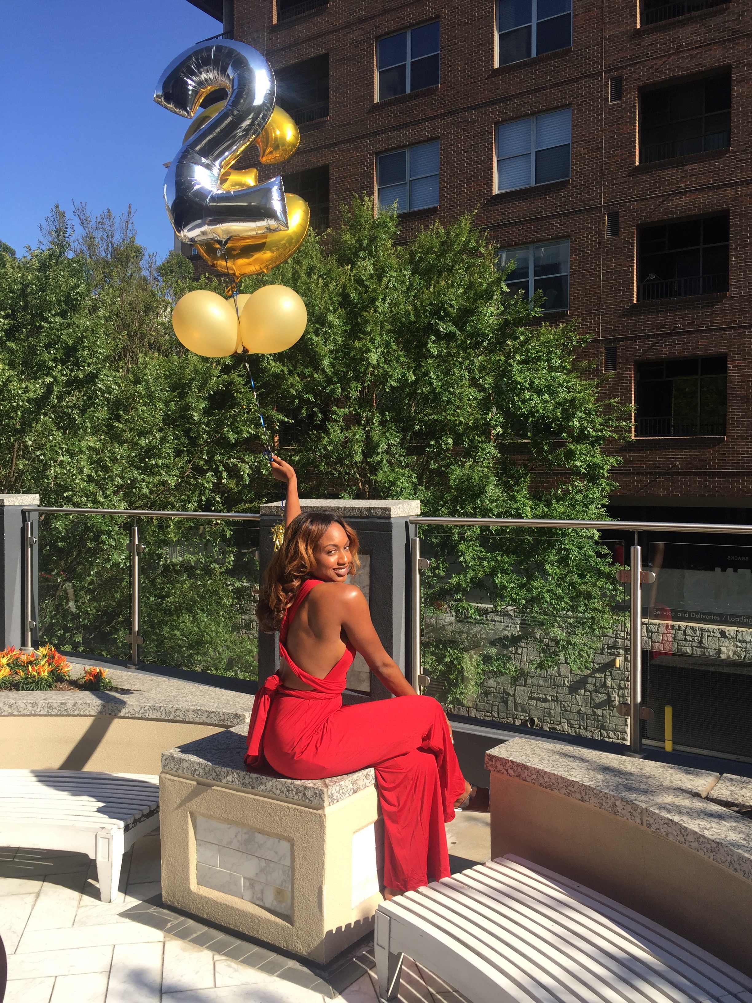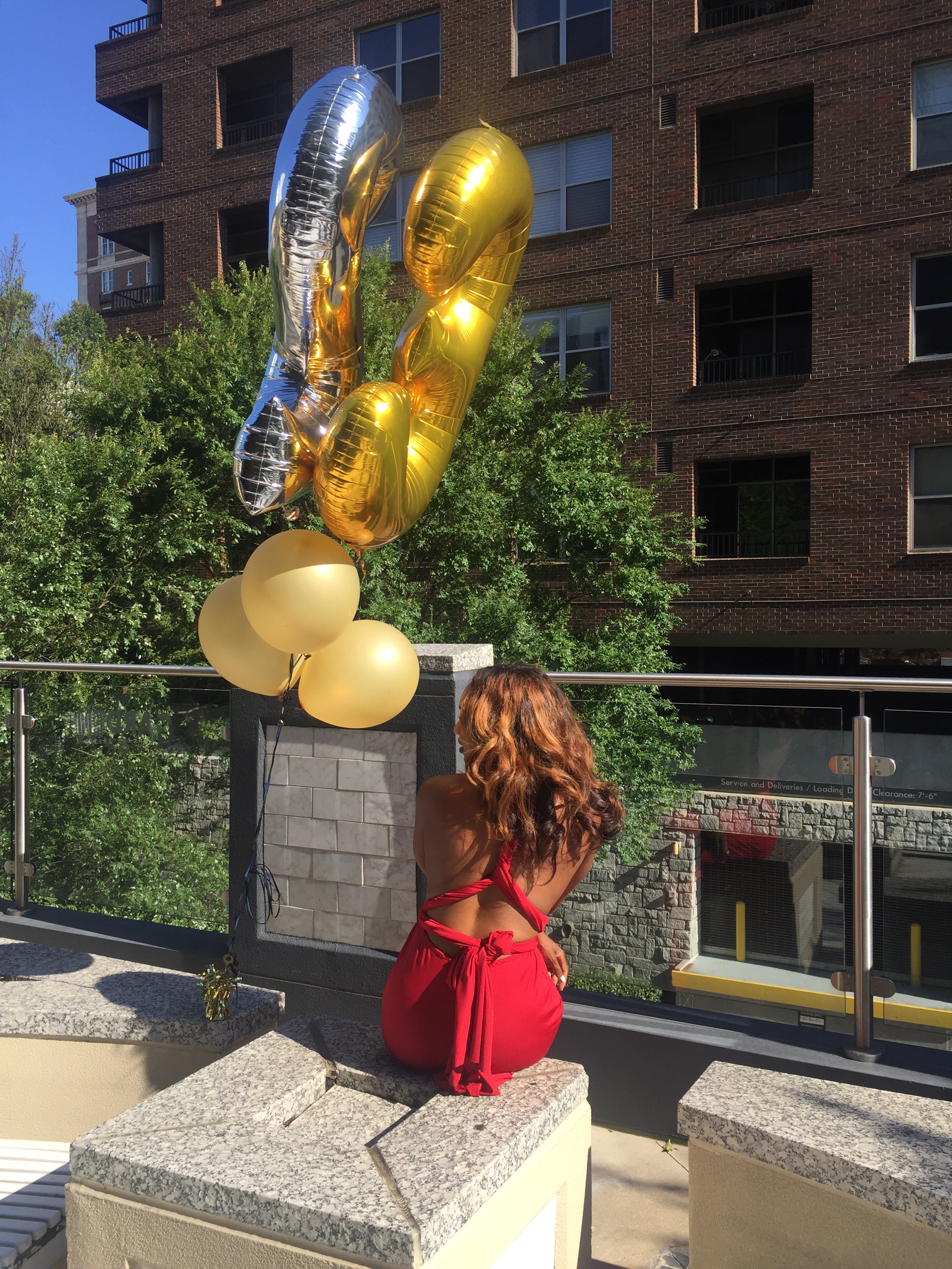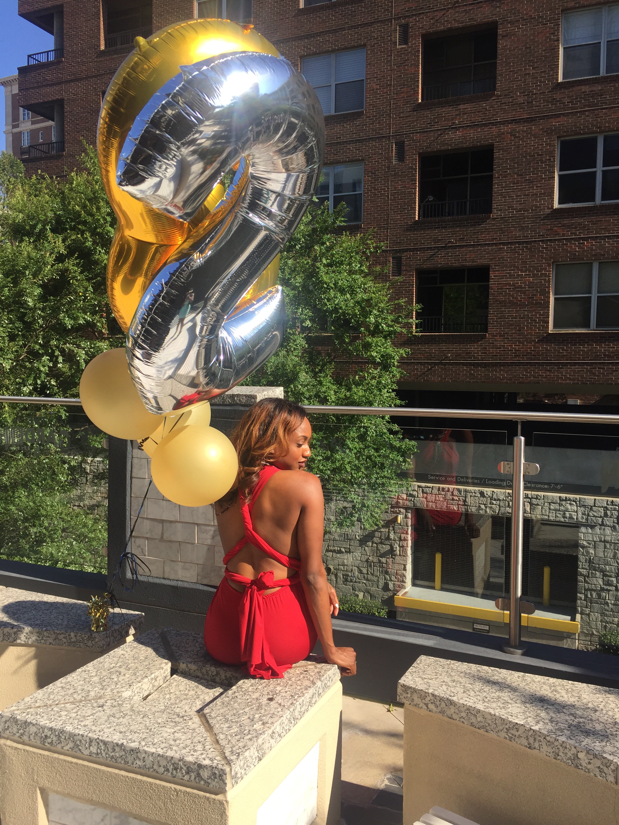 I love having a summer birthday. I spent the day doing a few of my favorite things, brunching and hanging on a rooftop. These gold mylar balloons are everything and I’m so glad that I finally got some. Best believe, I carried them around the whole day. I kept them attached to keep track of them and of course got asked “Is it 23 or 32?” -like I don’t already feel grown -and then the person would come closer and be like oh “I realize you must only be 23.” LOL I went to Bread & Butterfly for brunch. It’s a cute French-inspired cafe and it’s in a nice area of Inman Park in ATL. Later I went to the Rooftop at the Renaissance Hotel. It’s super fun and in the summers. They have a dope dj on the rooftop at happy hour.