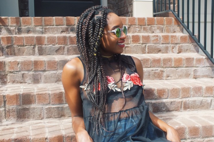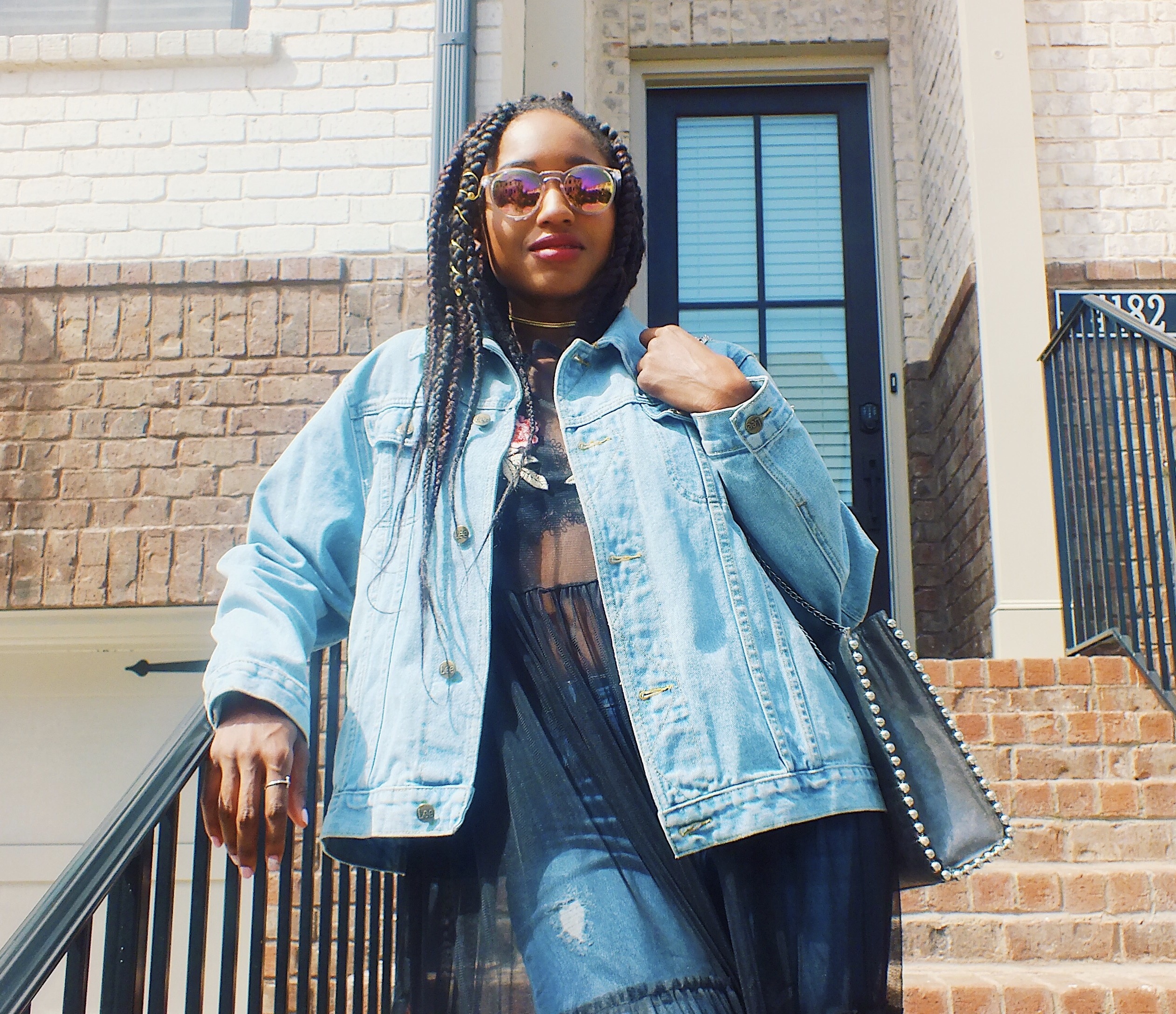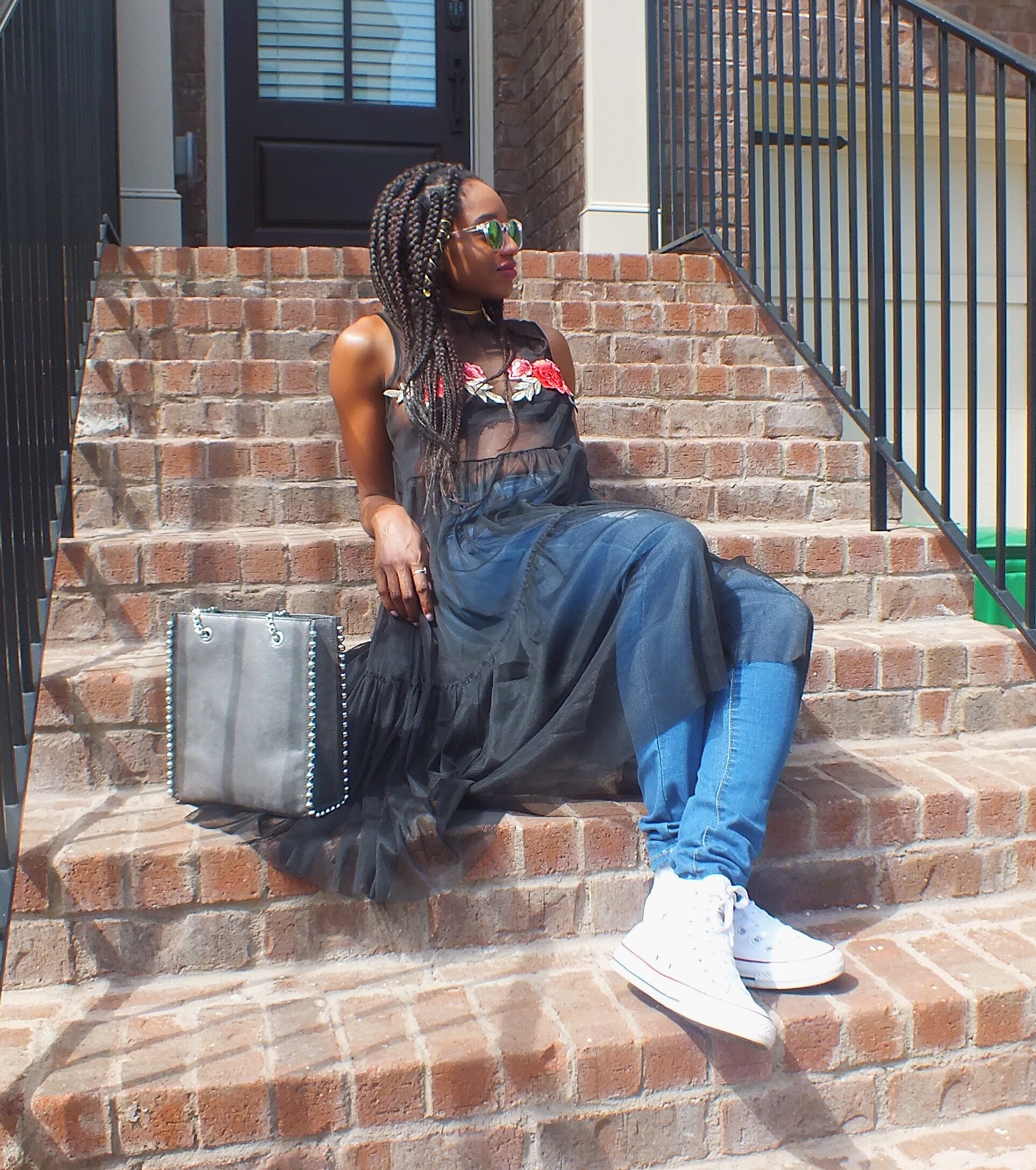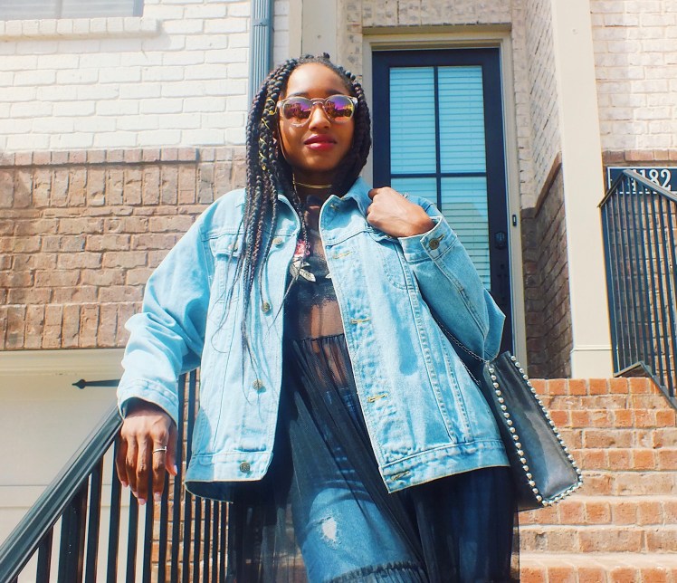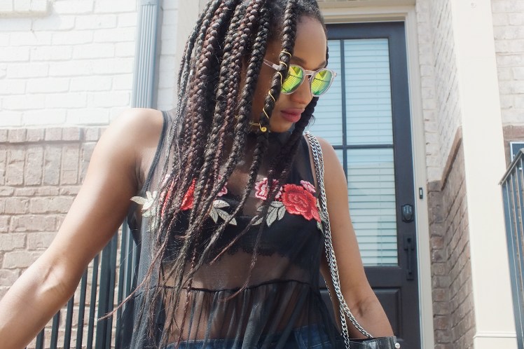 Because it is see through on top- momma asked me where I’d be going in this and said a tank under would be more appropriate lol- I wore high waist jeans that I got from Fashionnova. I am still trying to find other places that have jeans with stretch that fit me well. I’m not as thigh-y as I once was, but I still have an issue finding well fitting jeans.