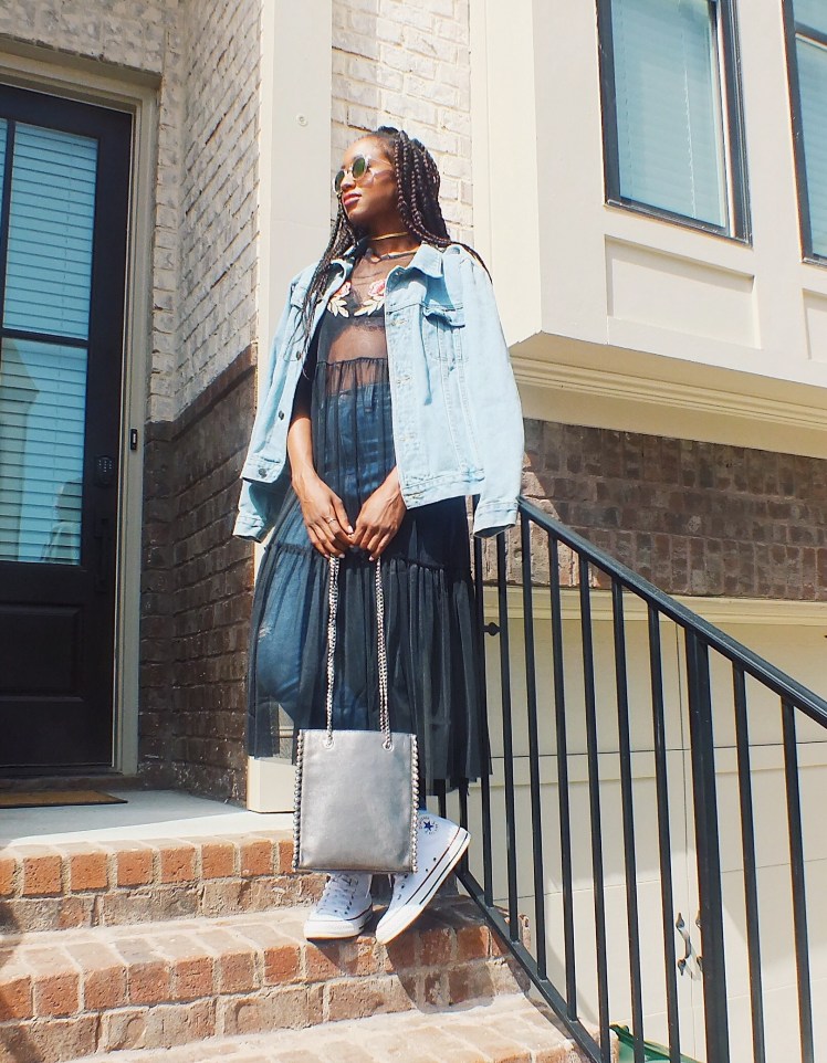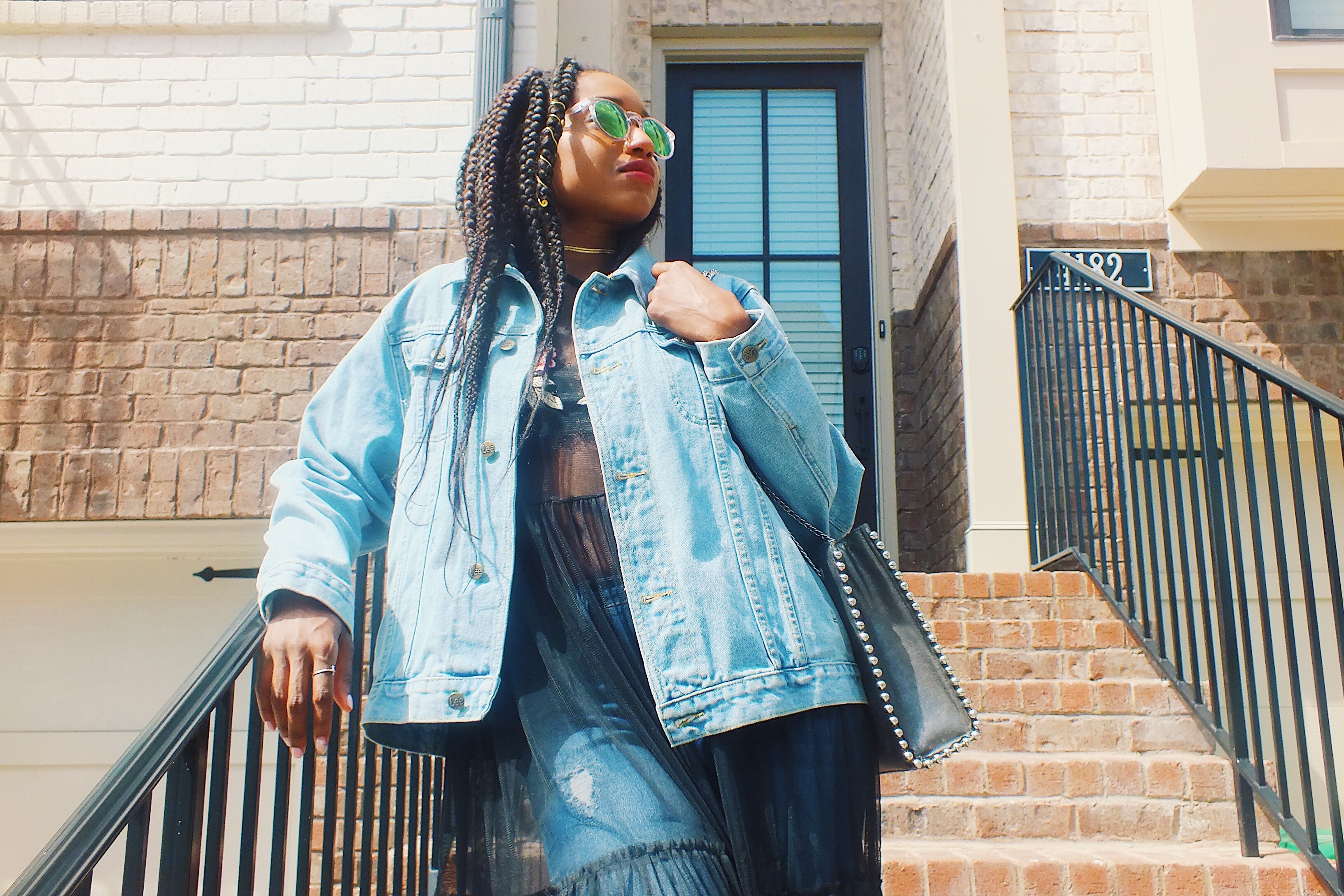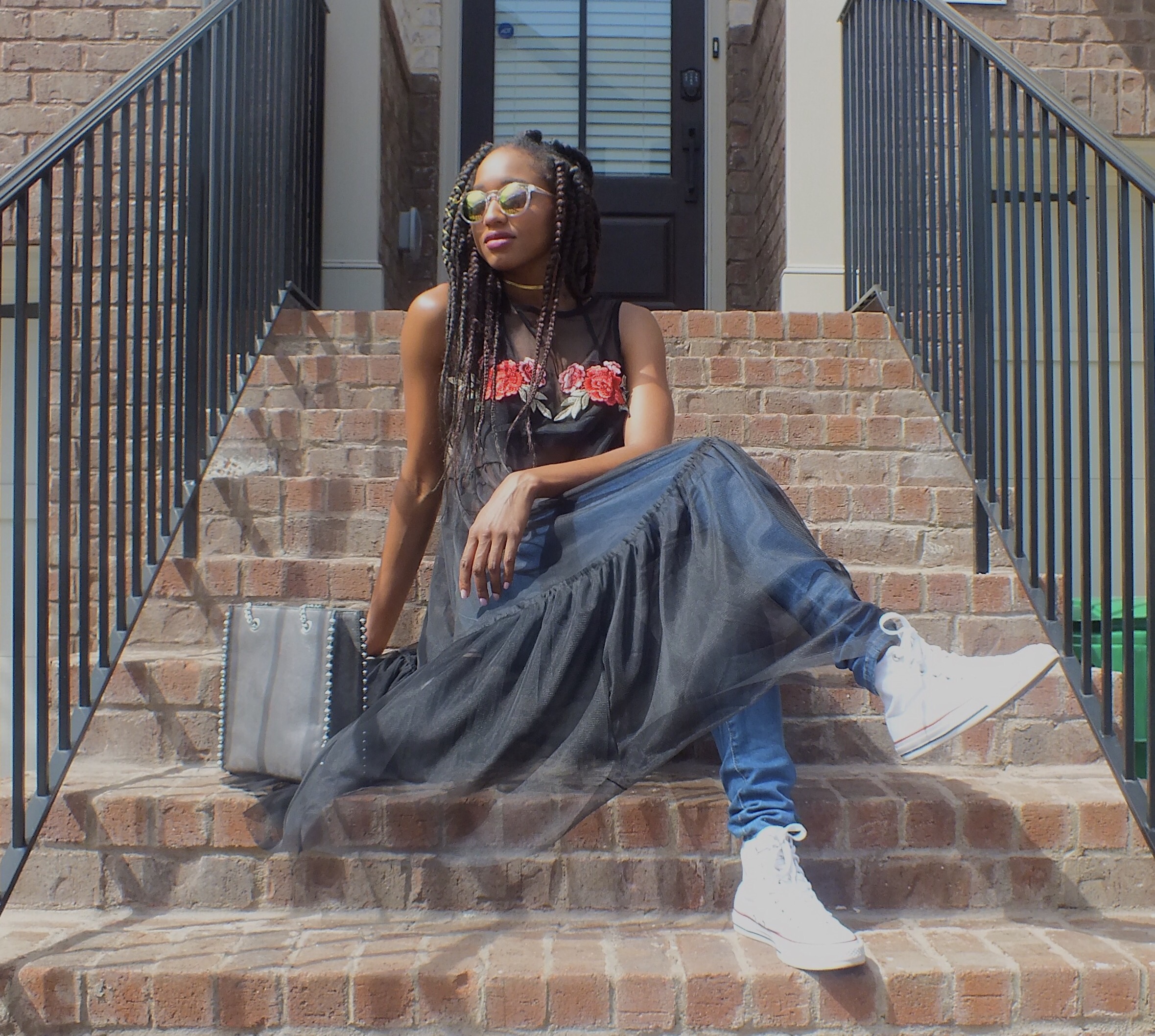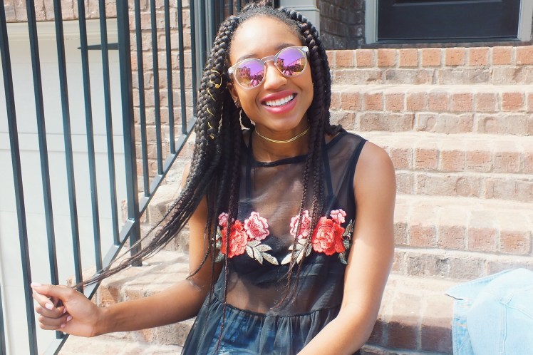 Because it is see through on top- momma asked me where I’d be going in this and said a tank under would be more appropriate lol- I wore high waist jeans that I got from Fashionnova. I am still trying to find other places that have jeans with stretch that fit me well. I’m not as thigh-y as I once was, but I still have an issue finding well fitting jeans.