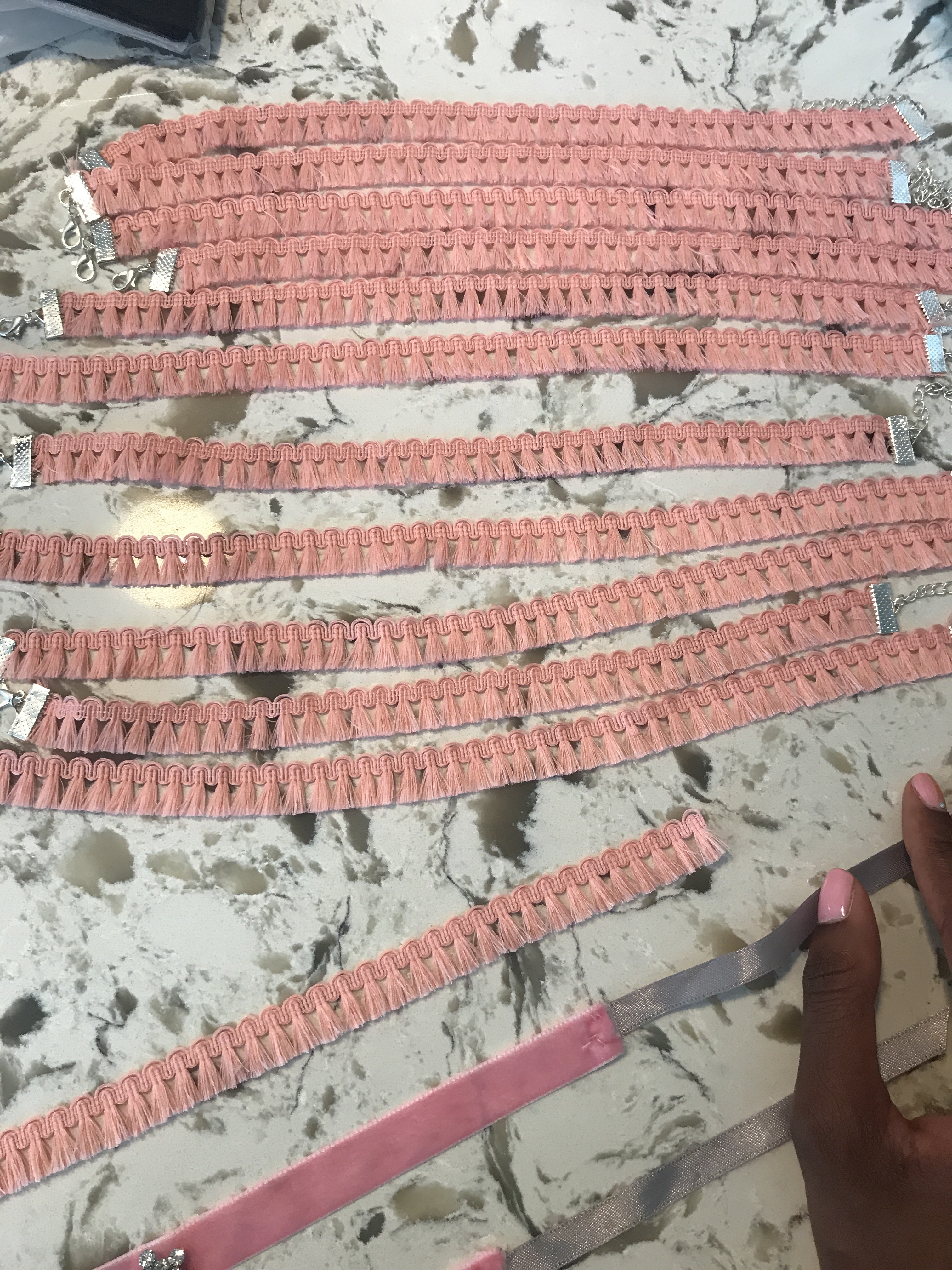 One of my roles is to sponsorship outreach and assemble the gift boxes; they came out so well. I’m obsessed with these black queen with a dream bags. The bags had goodies from our head sponsor Thank God it’s Natural, Herbivore Botanicals, handmade candles, soaps, body scrubs, Nubian Heritage natural deodorant and your very own’s chokers. I’m super excited to now have a logo (added it to the blog) and I made fun new chokers made of velvet and fringe.