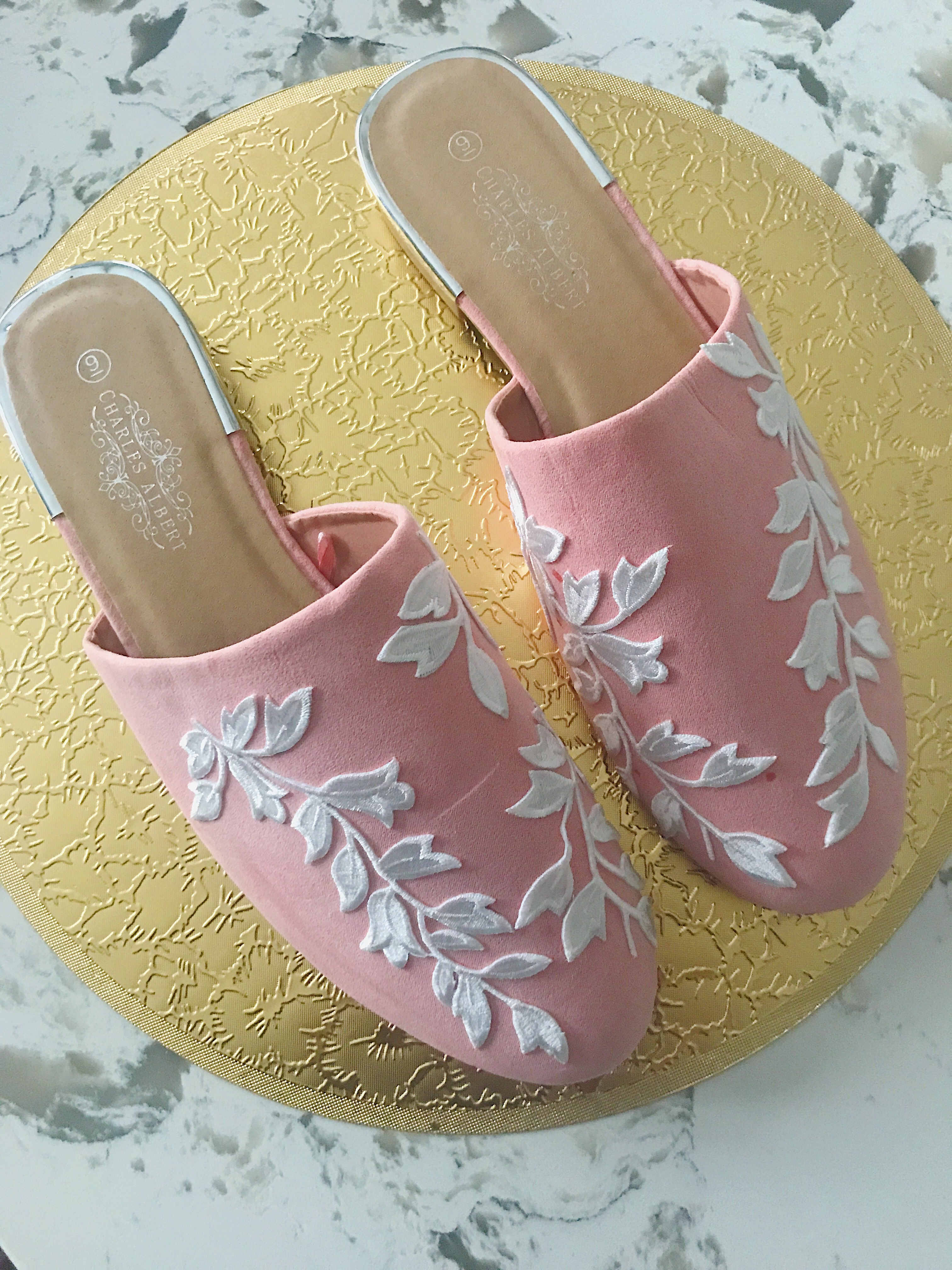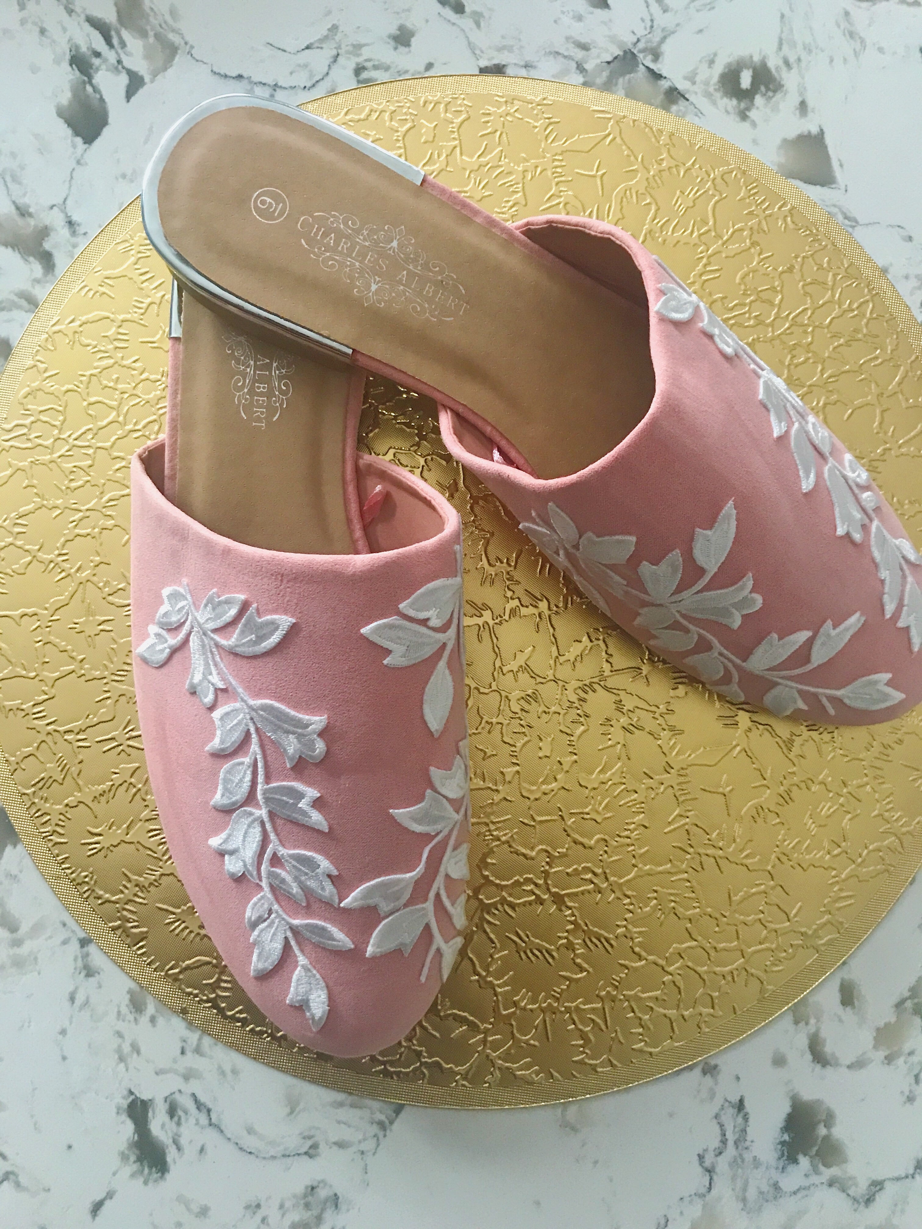 Mules of today come embelished with the likes of appliqué, embroidered patterns, fur, pearls, the works! For this DIY, I used white flower appliqué, and these plain mules, they’re on sale for $9.11! Here are four easy steps to complete these.