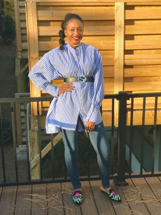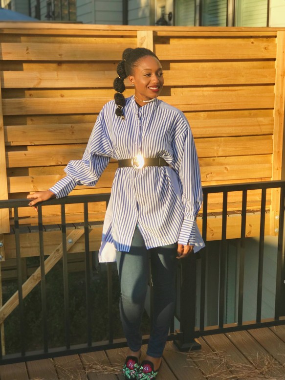 This is my favorite dress shirt that I’ve owned. I love the no collar, thick cuffs, high and low and two stripped tones. I continue to live through the Nasty Gal 50% sale and if you haven’t checked it out, now is the chance.
