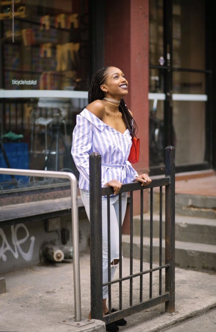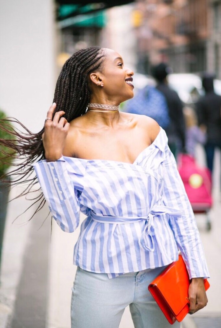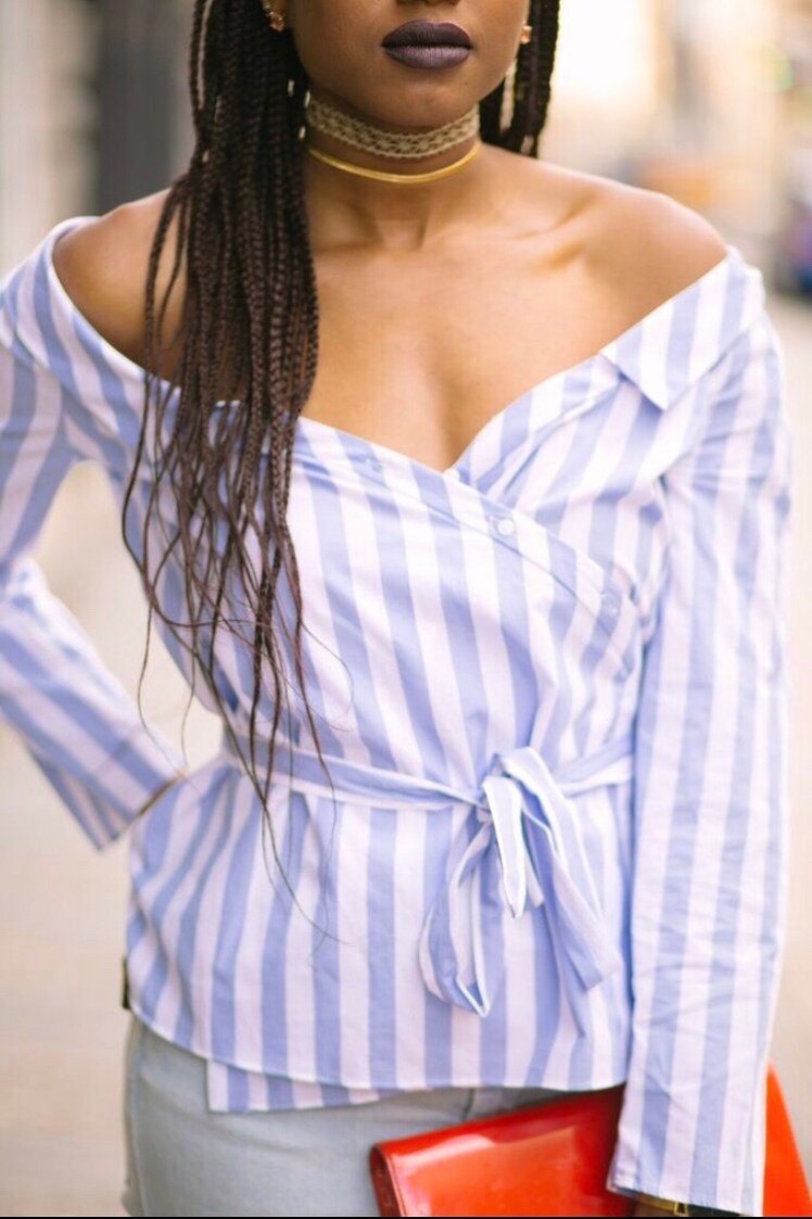 I paired them with this off the shoulder striped top that I found in the Zara sale for $9.99. I’m sure looking forward to their sale starting next month.