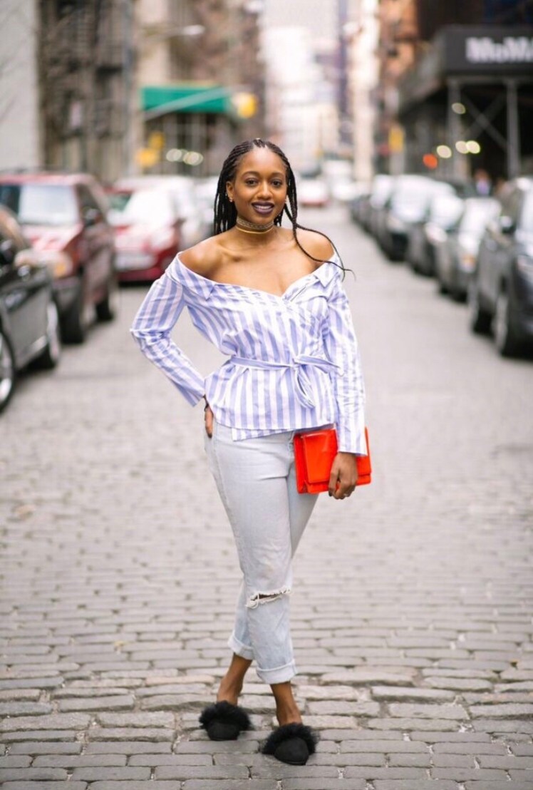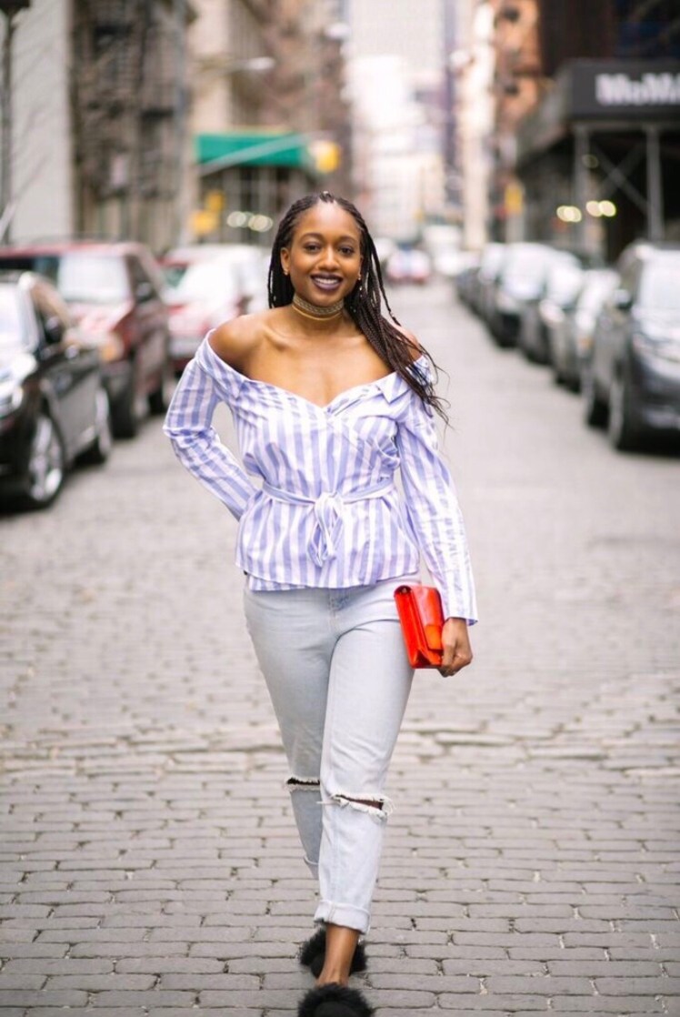 I love mom jeans because they’re not too fitted like skinnies and not too baggy like boyfriend jeans. They’re high-waisted with a bit of a vintage look as they tribute the originals from the 90s. Plus they are usually distressed and make for a casual yet put together look with the high waist.
