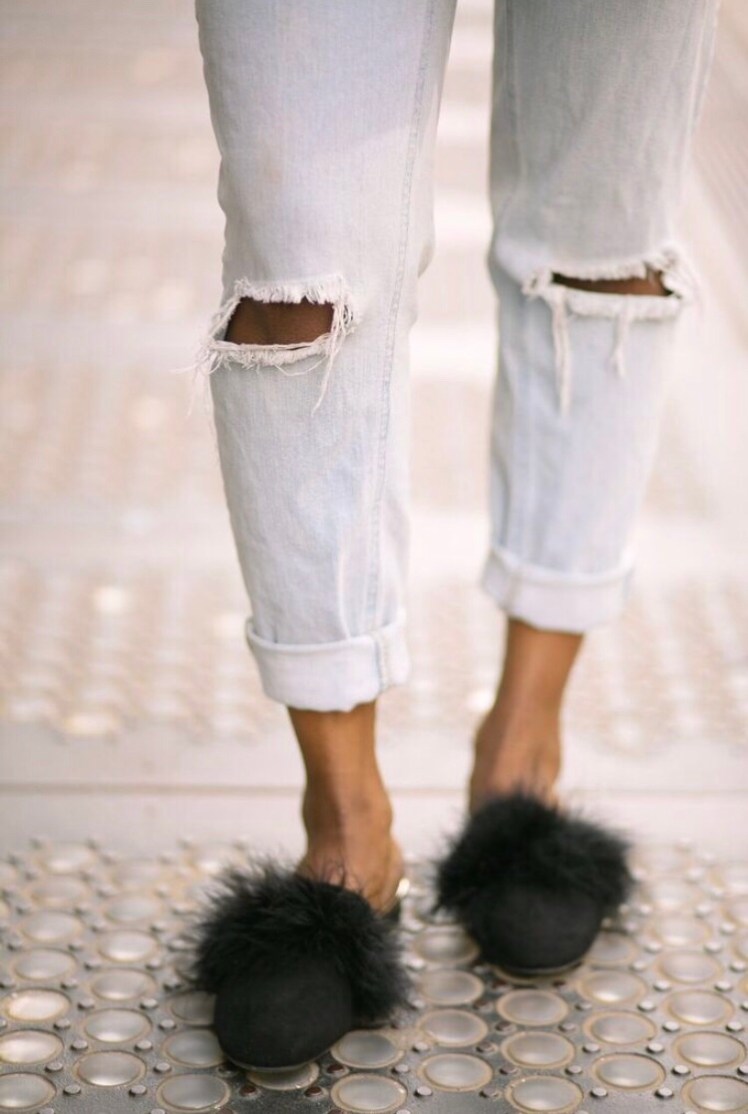 These faux fur mules were a DIY post and took a pair of $10 Forever 21 mules and trimming.