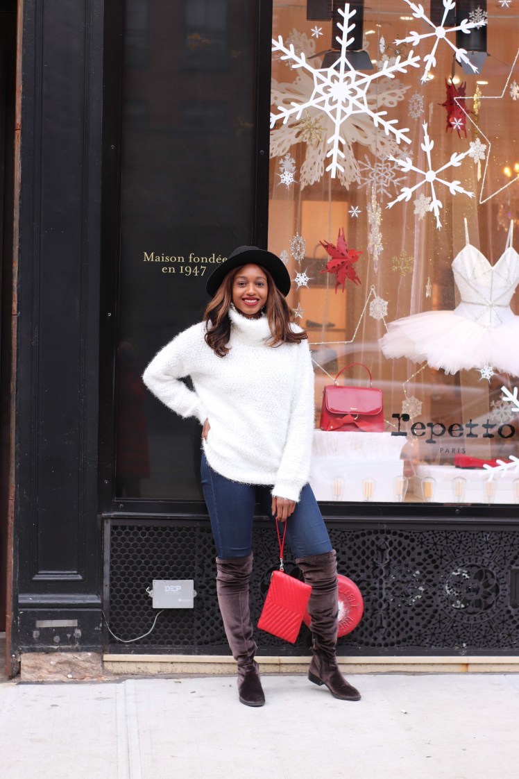 Turtlenecks are lifesavers on the East Coast. White will forever be a go-to shade because it’s so refreshing. I haven’t done it much for colder weather but I love how it brightens frigid days.