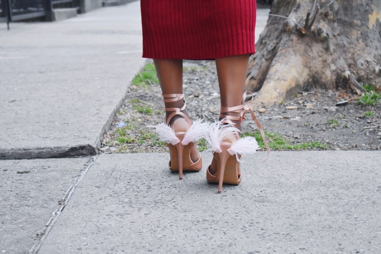 Feathers added to anything makes it look fancy. I love that I went with an ankle tie shoe for added drama. This look is fun for the holiday of love and it won’t cause you to buy a new pair of shoes or outfit!