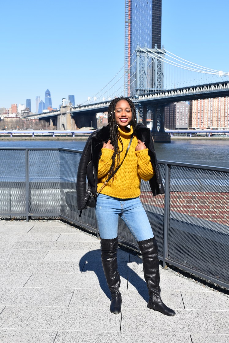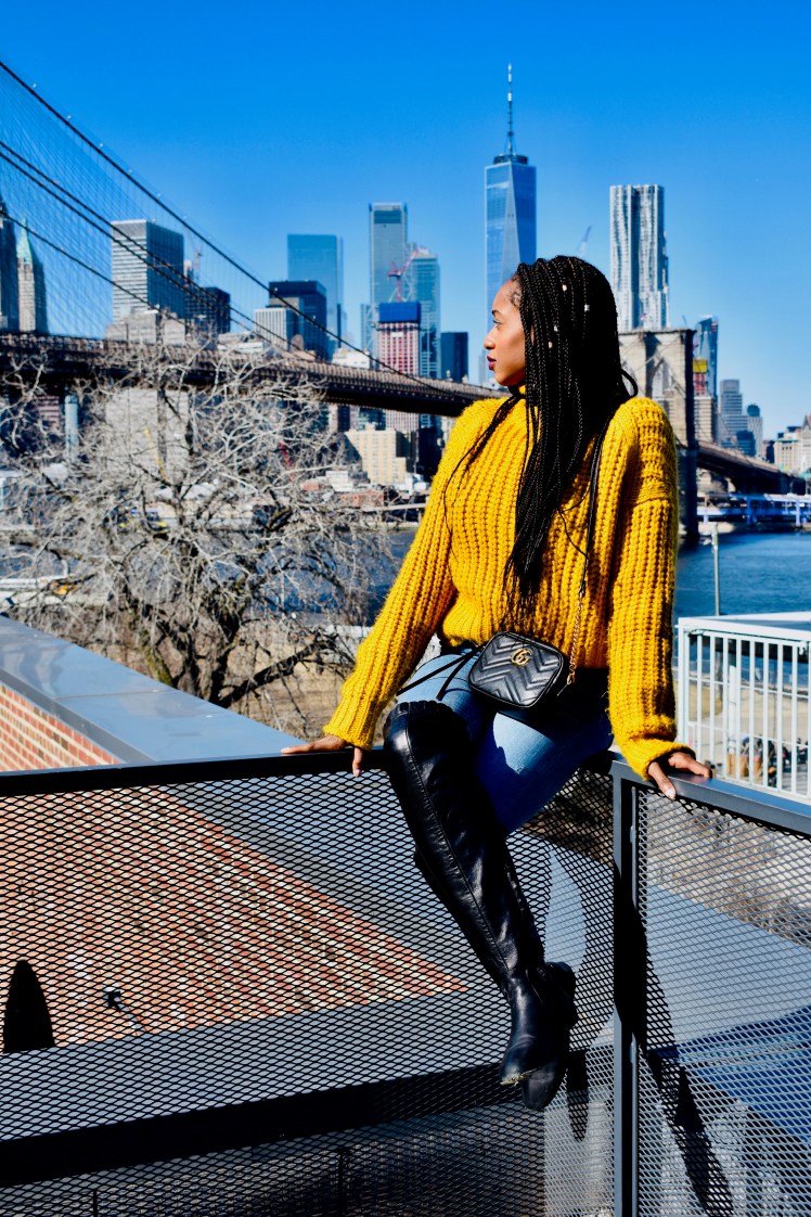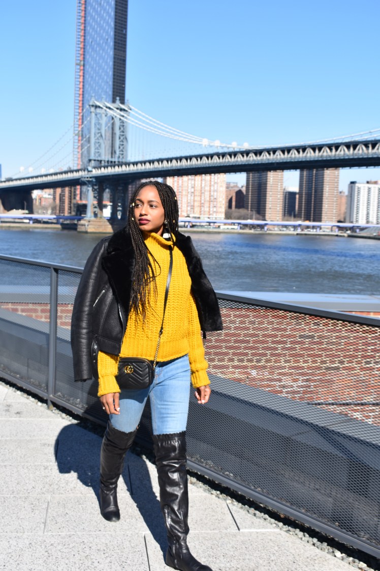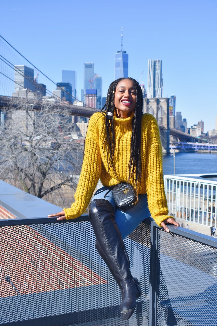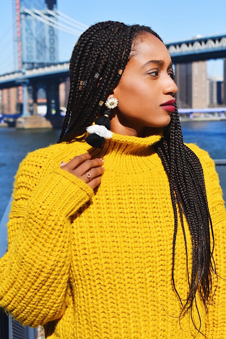 Who says yellow isn’t a winter shade? I’m bringing sunshine to this last month of winter by incorporating yellow. These days have been ‘brick’ lately and wearing a warm shade turtleneck ups my mood because the nnnnwintertime blues are real! I found this gem from H&M. I love cable knit and I’m the shade of course. It was $35 which was a steal compared to most turtlenecks that are in the $50 and up range.