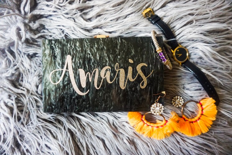 The story behind this DIY is I realized I didn’t have a very important staple, a black clutch in my wardrobe. I turned to Amazon to find a fun clutch, but this could be a way to spice up a clutch that you already have.