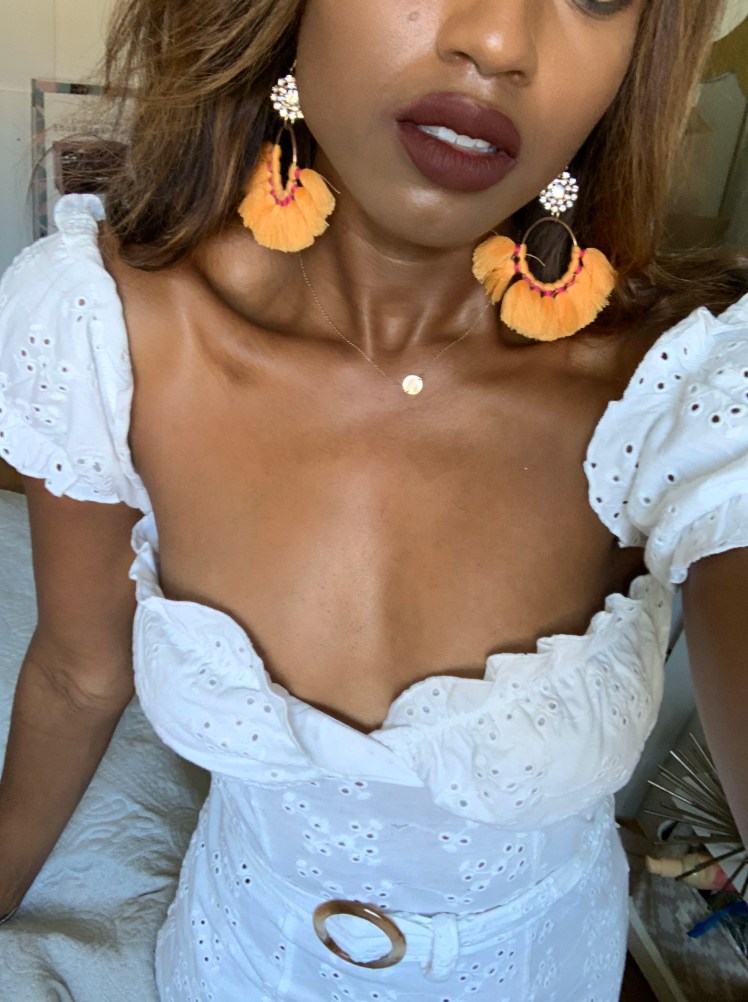 I paired this look with items from my Etsy- the tassels, the clutch and the fan. The fan restock is soon come! I love this hoop and tassel combo. These animal print ankle wrap sandals are on sale for $25 Public Desire on ASOS.