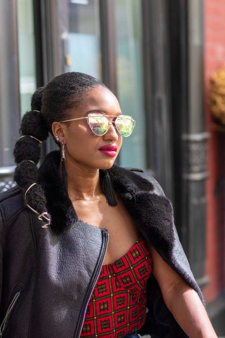 Not seen: a safety pin and a hair clip I used to make the top fit. Don’t think it’s evident in the photos, but this red print corset is a few sizes too large. I wait to buy Ankara on sale because I’m used to getting it for the low in Ghana or made by Momma Ro. I got this corset in the Grassfields sale and there were only large sizes left. Have you checked out their site? They’ve become the go-to for Ankara. At Curl Fest, I spotted so many of their print styles.