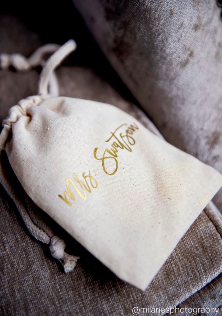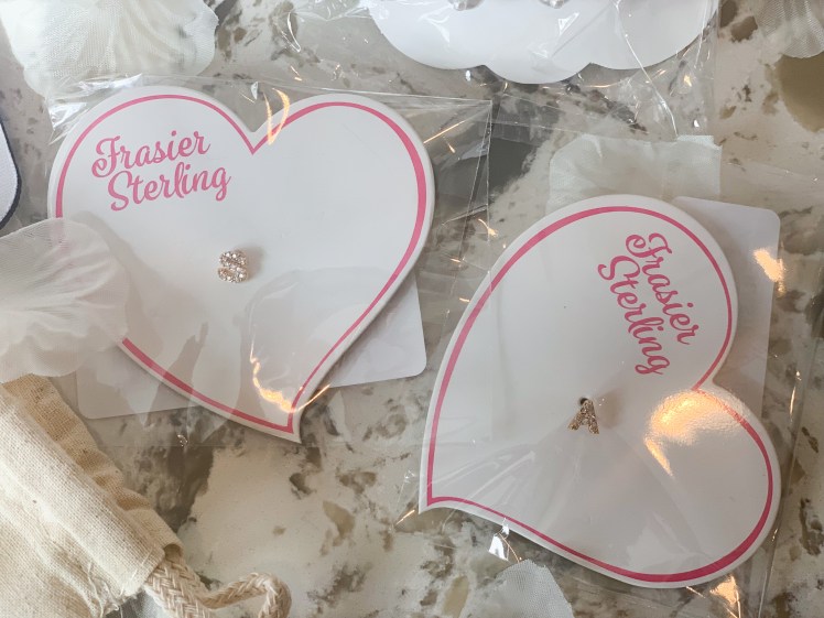 Personalized jewelry is a forever fav so I got her initial earrings that I also have for her new initials “AS” which also turn out to be my initials so we match. For an added touch, I put them in a personalized jewelry sack that looks like it’s no longer available similar here.
