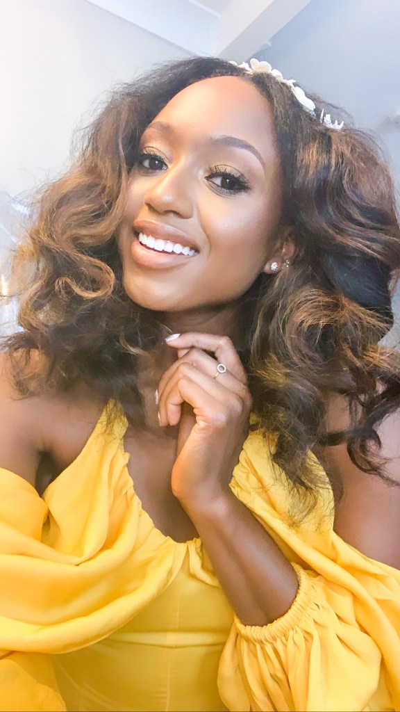 It’s safe to say I hadn’t been fully dolled up since 2019. I got my makeup done by Valencia of Polished Faces and she came to my house. My hair was done by Ena Styles. I had it blown out and curled during the day then wet the Burmese curly hair to its natural state for dinner. The bundles are from DHair Boutique which is my favorite hair brand that I’ve been wearing religiously since 2016.
